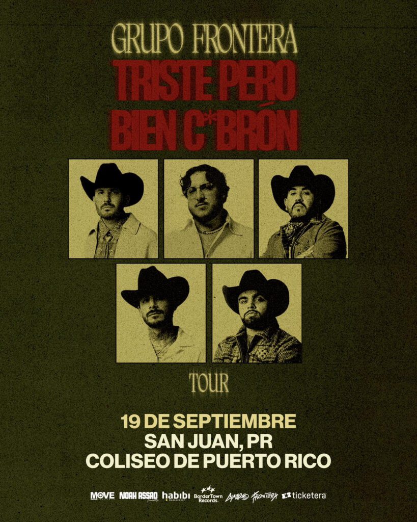 SAN JUAN, PR (9 de marzo de 2026) — Ganadores del Latin GRAMMY® y nominados al GRAMMY®, Grupo Frontera anuncia su primera presentación en Puerto Rico con una parada del “Triste Pero Bien C*brón Tour” el 19 de septiembre de 2026 en el Coliseo de Puerto Rico José Miguel Agrelot, la tarima que ha consagrado a algunos de los nombres más grandes de la música hispana. El concierto marcará el esperado debut de la agrupación en la isla, llevando por primera vez su distintivo sonido norteño-cumbia a uno de los escenarios más importantes del Caribe. La venta general de boletos comenzará el miércoles 11 de marzo a las 10:00 a.m. a través de www.ticketera.com.