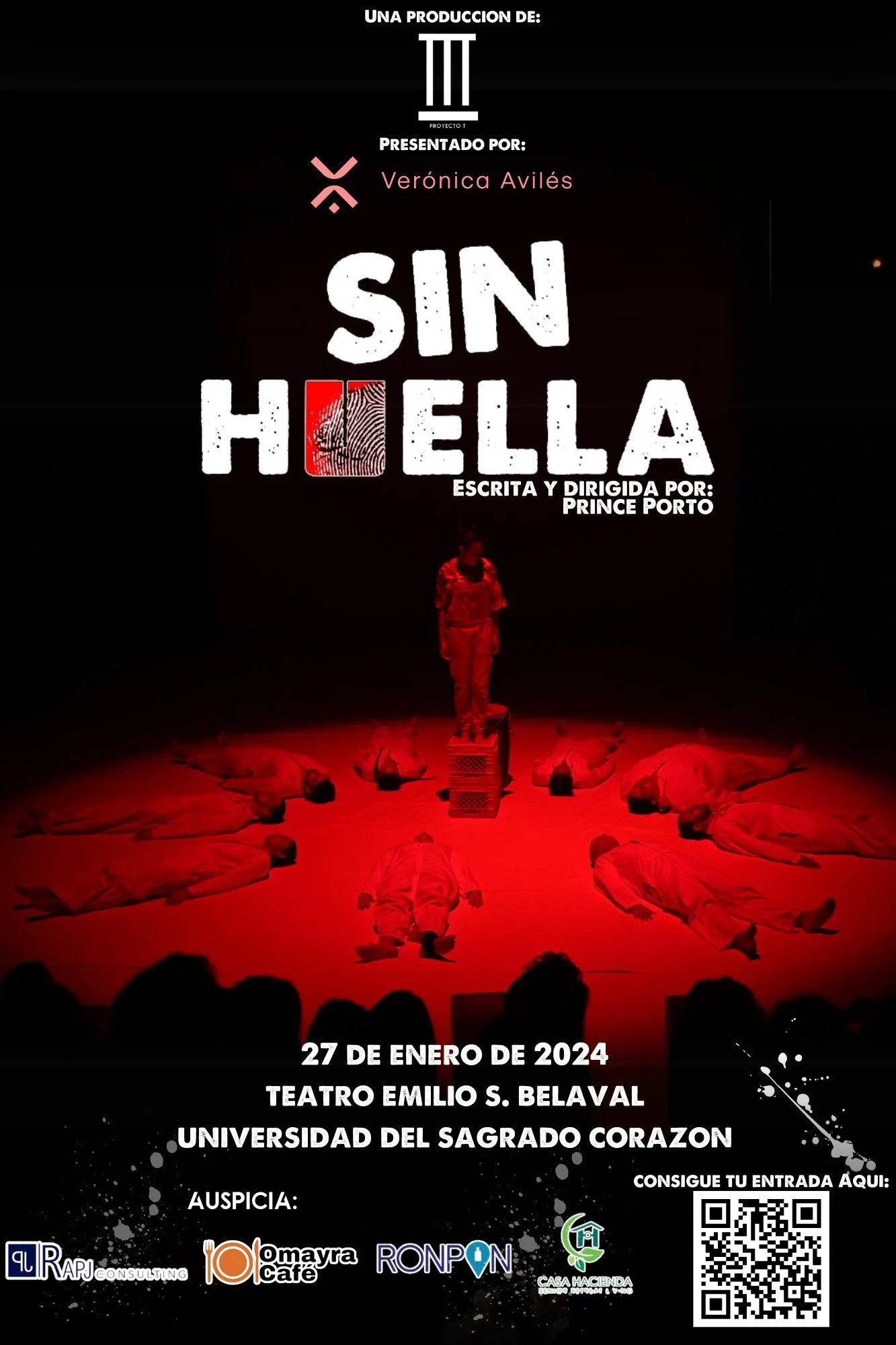 El colectivo de teatro "Proyecto T" se enorgullece en volver a presentar su obra, titulada "Sin Huella", una pieza de teatro experimental que aborda temas profundos y conmovedores en un formato innovador. La obra se llevará a cabo en el Teatro Emilio S. Belaval en la Universidad del Sagrado Corazón el día 27 de enerode 2024.